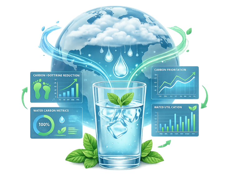 Ofis binaları, iş merkezleri, oteller ve kampüslerde altyapıdan bağımsız su üretimi ile kurumsal karbon ayak izi hesaplama ve raporlama çözümleri birlikte sunulur.